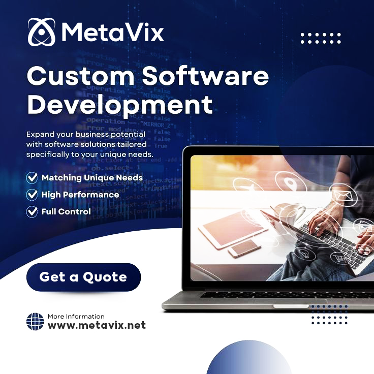 At MetaVix, we build custom software solutions that are precisely aligned with your unique business needs, workflows, and long-term growth goals. Whether you're looking to automate internal processes, launch a SaaS platform, build an ERP or CRM system, or create a cloud-based application — our team delivers scalable, secure, and high-performance software that adapts as you evolve.