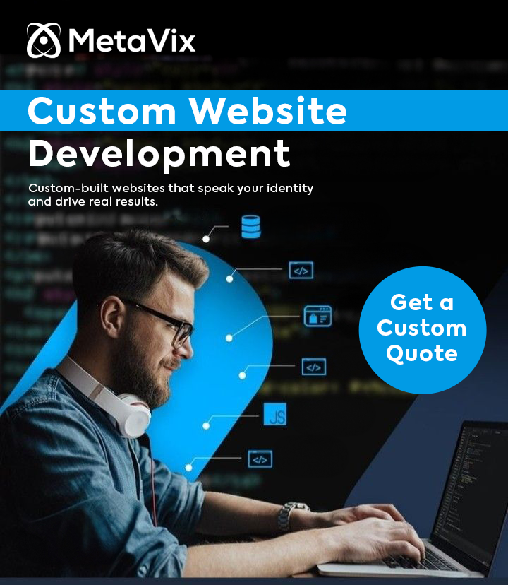 At MetaVix, we specialize in ultra-fast, SEO-optimized website development tailored to your brand identity, business objectives, and ideal customer journey. Our expert team delivers custom web design solutions that combine responsive UI/UX, mobile-first architecture, and conversion-driven functionality to maximize user engagement and lead generation. Whether you're a startup, SME, or enterprise, we build future-ready websites that drive performance and growth.